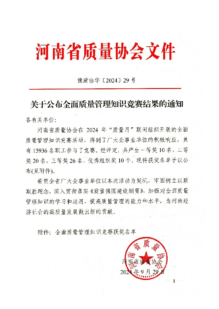 上一篇:没有了! 下一篇:转发关于2024年度河南省质量诚信体系建设A等企业的公示