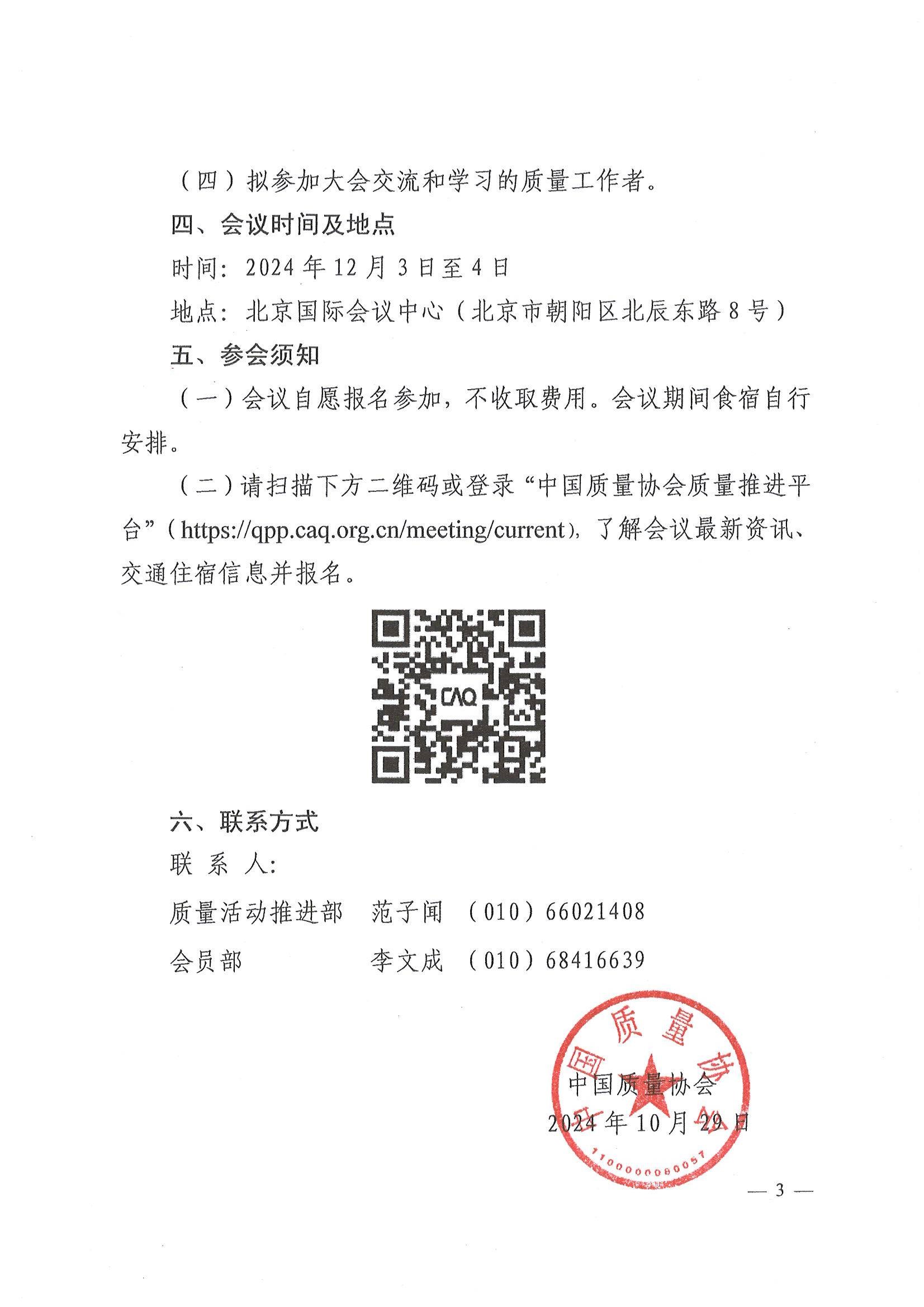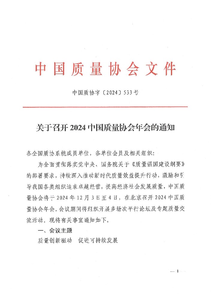 转发中国质量协会《关于召开2024中国质量协会年会的通知》